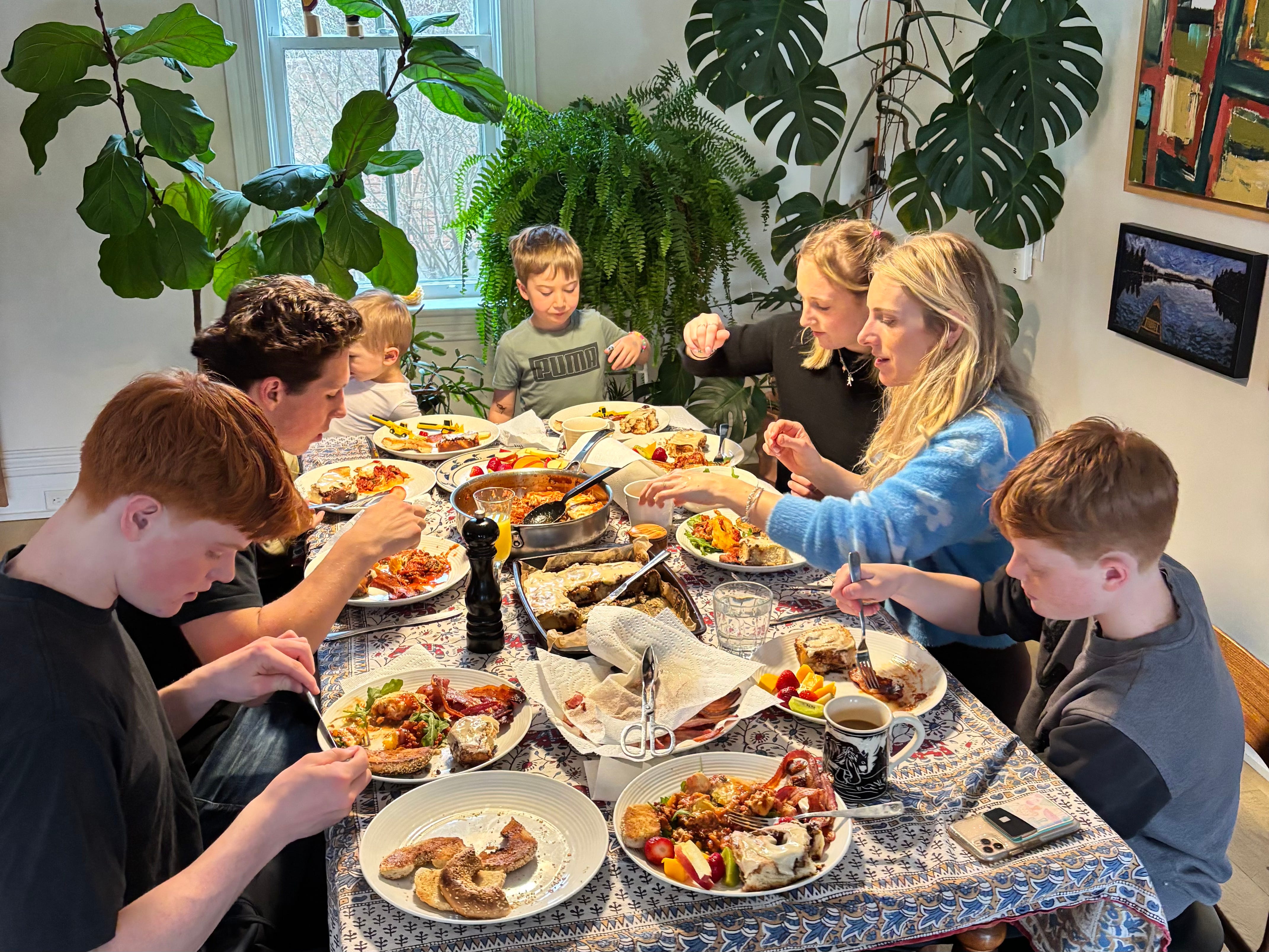 Entertaining at home, by contrast, puts everyone at ease (except, possibly, the host, for the reasons listed above, but those can be overcome). Hosting is a great communal family activity that incentivizes kids to get off their devices, pitch in with prep, and engage with guests. It motivates culinary experimentation and gives you a reason to try a recipe you’ve been eyeing for months. And if you warn your guests in advance that it’s a super casual event, you have nothing to worry about.
